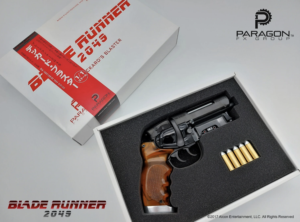 When located (30 years later) in 2049 he’s seen carrying the readily identical piece; truly attesting to both his confidence in its effectiveness and sustained durability over these many years. Paragon FX Group, in association with Alcon Entertainment, LLC proudly presents this licensed, limited-edition replica of Rick Deckard’s Blaster.