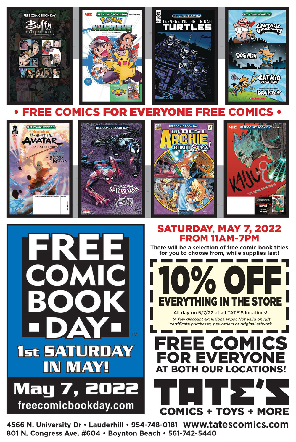 10% off everything in all of our locations and free comics for everyone!