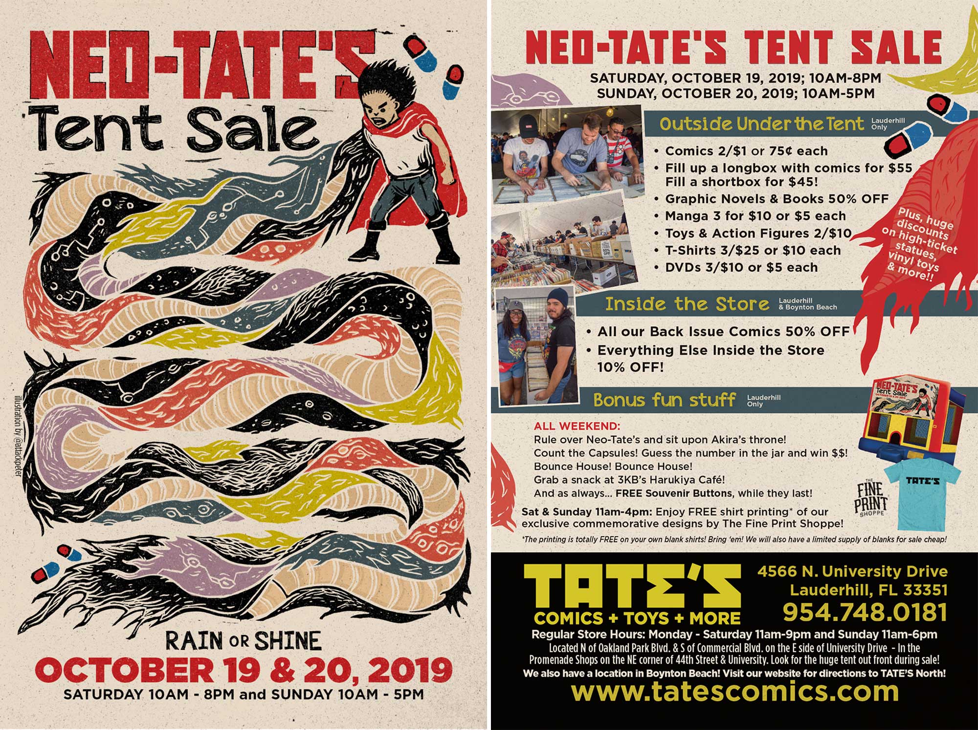 *The printing is totally FREE on your own blank shirts! Bring ‘em! We will also have a limited supply of blanks for sale cheap!