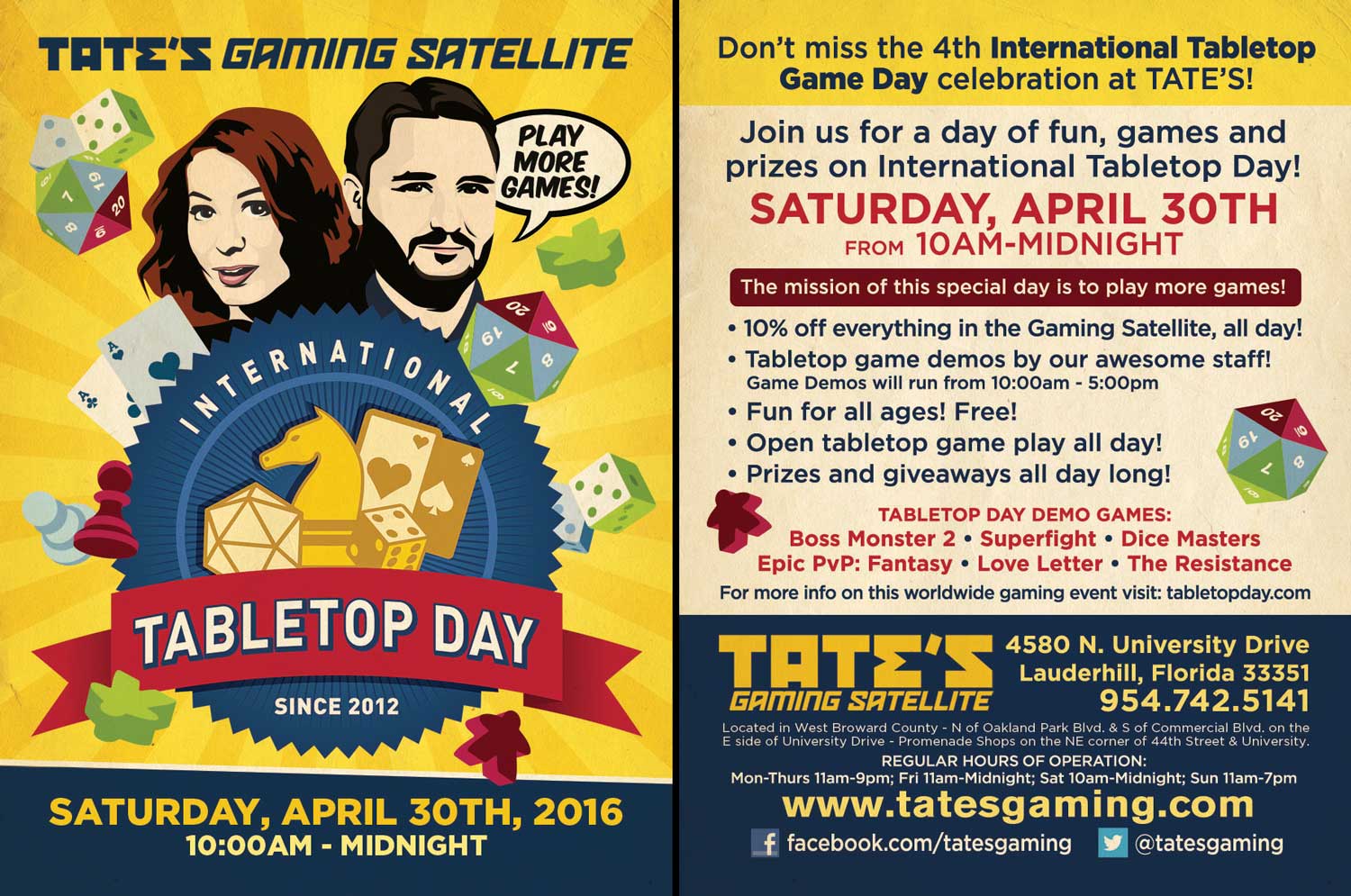 Don’t miss the 4th Annual International Tabletop Game Day celebration at TATE’S!
