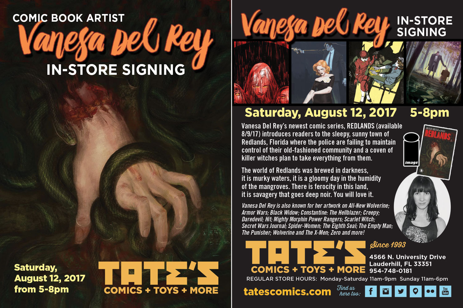 Vanesa’s newest comic series, REDLANDS (available 8/9/17) introduces readers to the sleepy, sunny town of Redlands, Florida where the police are failing to maintain control of their old-fashioned community and a coven of killer witches plan to take everything from them.