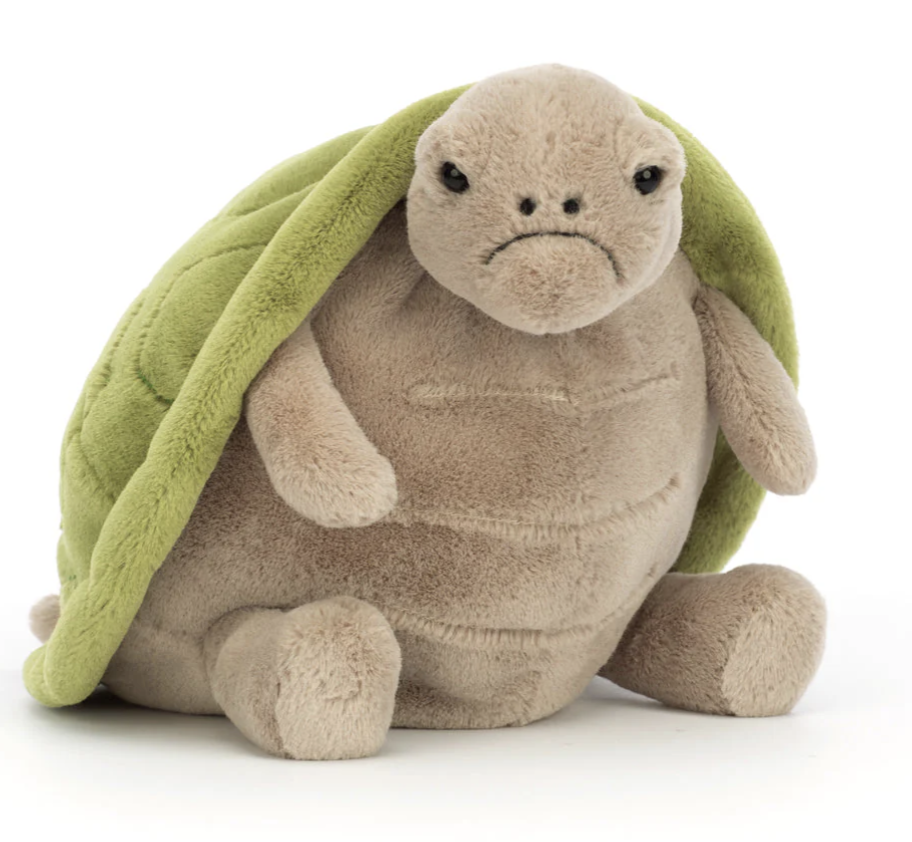 Timmy Turtle needs a friend to cheer him up – or someone to have a good grumble with! This soft, sturdy guy has a green textured shell, embroidered fudge fur and squeezable feet. Don’t be fooled by the face – Timmy gives surprisingly good hugs!