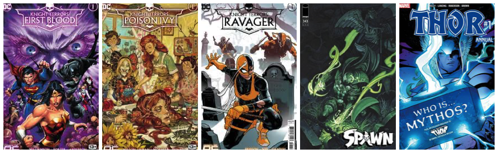 Knight Terrors First Blood #1; Knight Terrors Poison Ivy #1; Knight Terrors Ravager #1; Spawn #343; Thor Annual #1