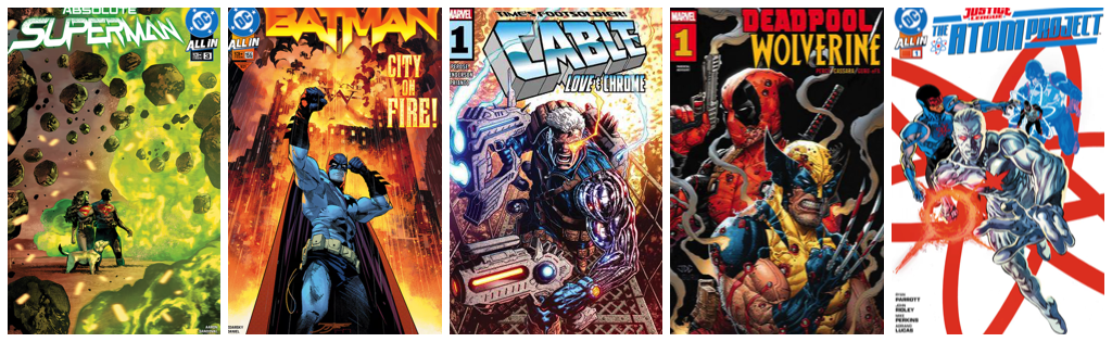 Absolute Superman #3; Batman #156; Cable: Love and Chrome #1; Deadpool/Wolverine #1; Justice League: The Atom Project #1