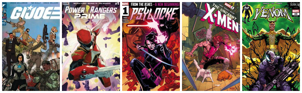GI Joe #1; Power Rangers Prime #1; Psylocke #1; Uncanny X-Men #5; Venom #39