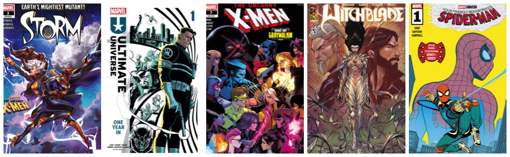 Storm #3; Ultimate Universe #1; Uncanny X-Men #7; Witchblade #6; Your Friendly Neighborhood Spider-Man #1