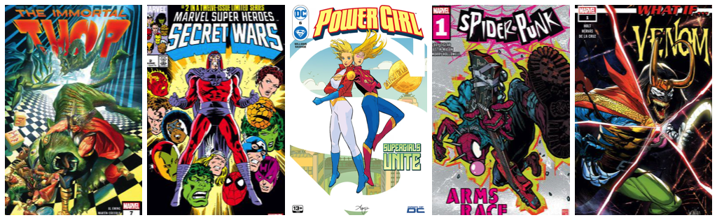 Immortal Thor #7; Marvel Super Heroes Secret Wars #2 Facsimile; Power Girl #6; Spider-Punk: Arms Race #1; What If…Venom #1