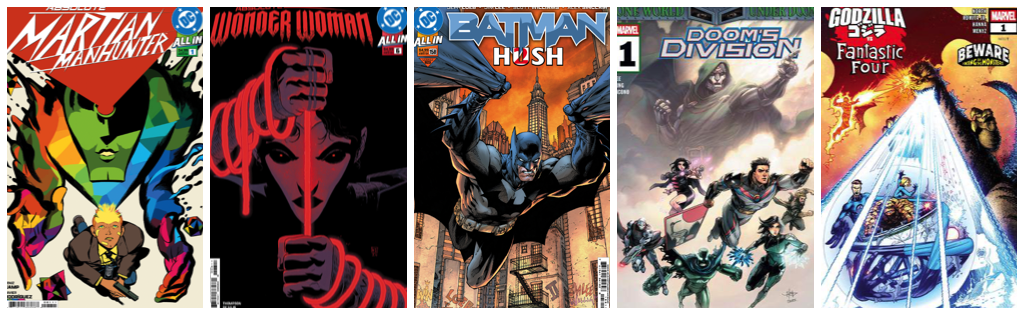 Absolute Martian Manhunter #1; Absolute Wonder Woman #6; Batman #158; Doom Division #1; Godzilla Vs. Fantastic Four #1