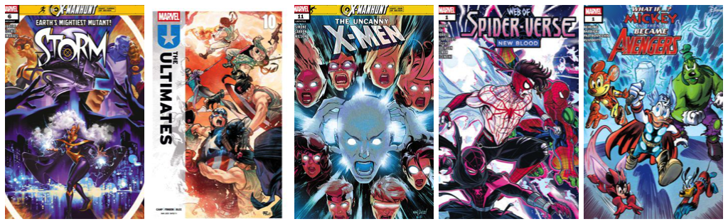 Storm #6; Ultimates #10; Uncanny X-Men #11; Web of Spider-Verse: New Blood #1; What If..Mickey & Friends Became The Avengers #1