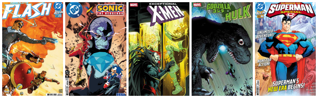Absolute Flash #2; DC x Sonic The Hedgehog #2; Exceptional X-Men #8; Godzilla Vs Hulk #1; Summer of Superman Special One-Shot