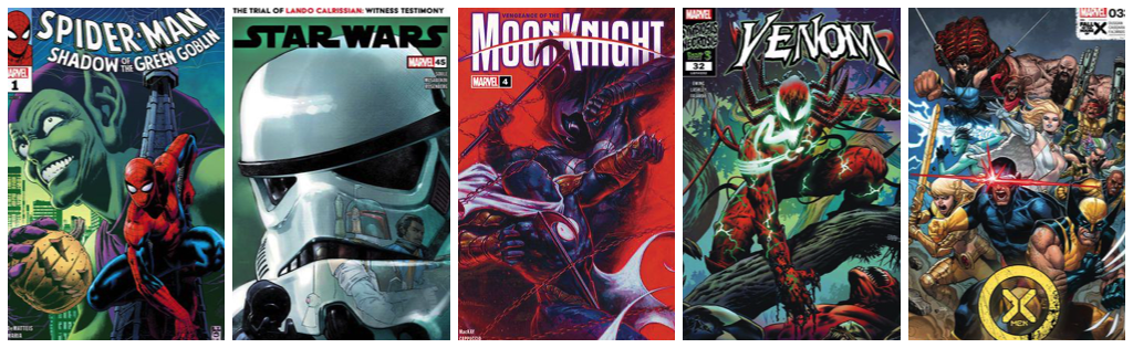 Spider-Man Shadow of a Green Goblin #1; Star Wars #45; Vengeance of Moon Knight #4; Venom #32; X-Men #33
