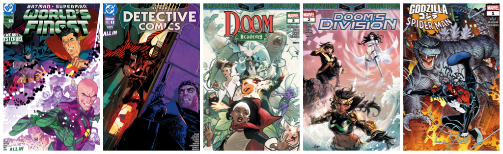 Batman/Superman: World’s Finest Annual 2025 #1; Detective Comics Annual 2025 #1; Doom Academy #3; Doom’s Division #2; Godzilla Vs Spider-Man #1