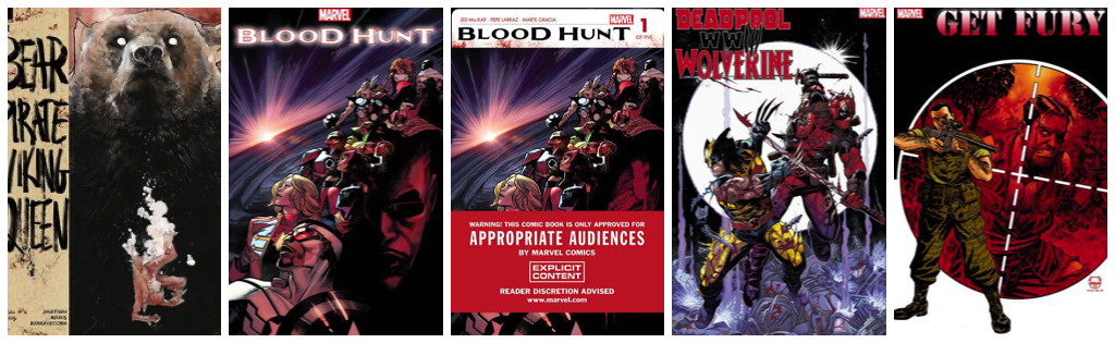 Bear Viking Pirate Queen #1; Blood Hunt #1; Blood Hunt: Red Band #1; Deadpool and Wolverine World War III #1; Get Fury #1