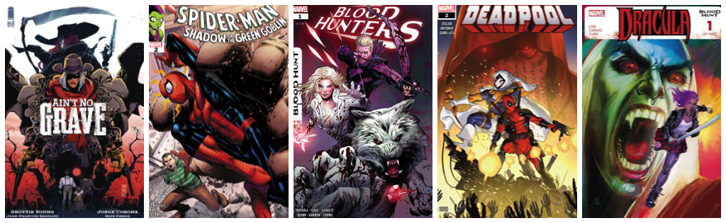 Ain’t No Grave #1; Bloodhunters #1; Deadpool #2; Dracula: Blood Hunt #1; Energon Universe #1
