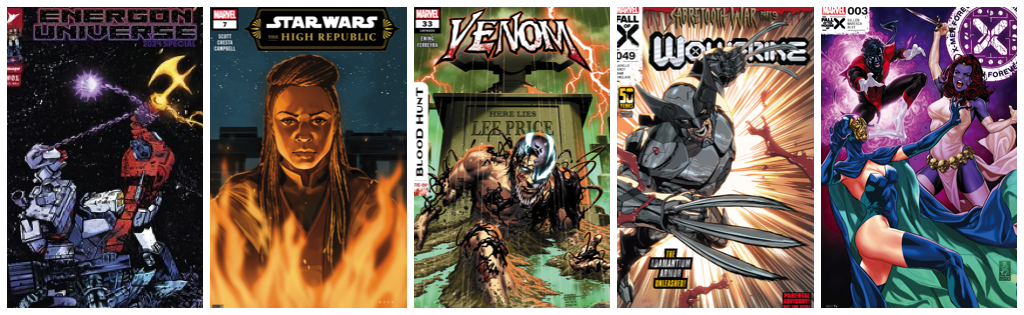 Spider-Man: Shadow of the Green Goblin #2; Star Wars High Republic #3; Venom #33; Wolverine #49; X-Men Forever #3