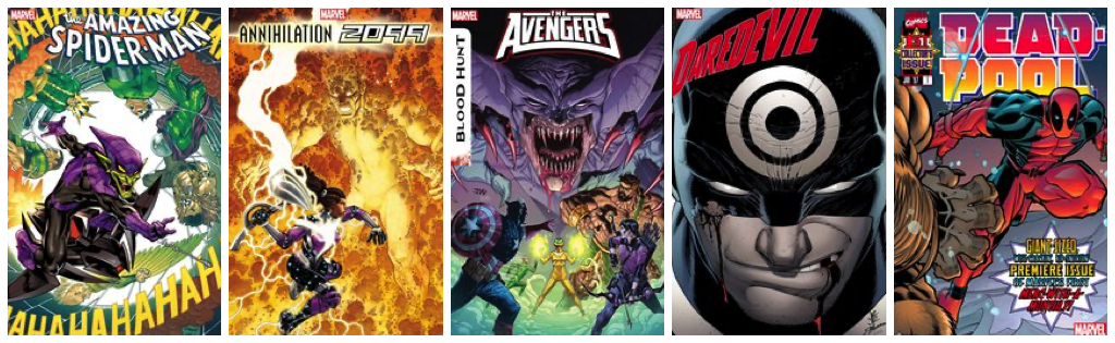 Amazing Spider-Man #53; Annihilation 2099 #2; Avengers #16; Daredevil #11; Deadpool #1 Facsimile