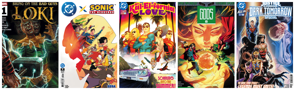 Bring On The Bad Guys: Loki #1; DC x Sonic #5; DC’s Kal-El-Fornia Love #1; G.O.D.S. One World Under Doom #1; Justice league Dark Tomorrow Special #1