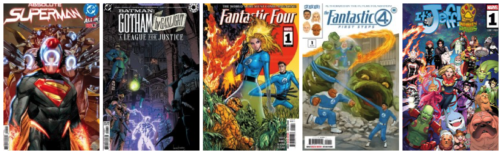 Absolute Superman #5; Batman: Gotham By Gaslight A League For Justice #1; Fantastic Four #1; Fantastic Four: First Steps #1; It’s Jeff: Infinity Paws #1