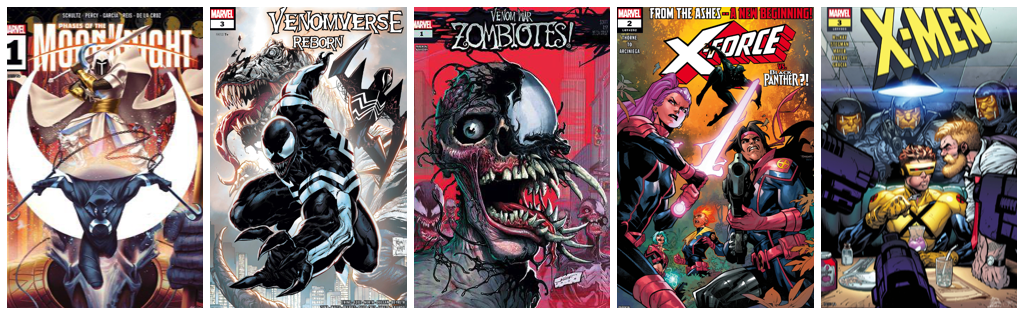 Phases of Moon Knight #1; Venomverse Reborn #3; Venom War: Zombies #1; X-Force #2; X-Men #3